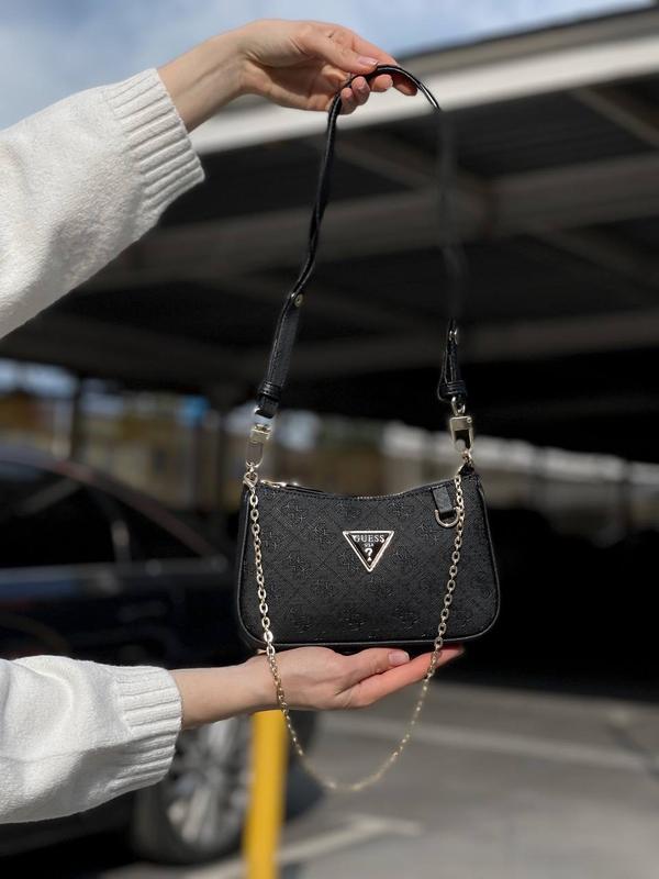 МОЖЛИВА ДОСТАВКА БЕЗ ПЕРЕДОПЛАТИ!!! Тільки накладений платіж Guess Mini Bag Black V2 Арт: 0150 Розмір: 20 х 13 х 5 см Матеріал: еко шкіра Опис: Сумка виготовлена з еко шкіри, на якій втиснено монограмний принт бренду. Спереду розташований логотип. Всередині має одне суцільне відділення з текстильною брендовою підкладкою. До сумки можна приєднати карабінами два ремінця. Один шкіряний - 70 см. Другий металевий ланцюжок - 55 см Безкоштовновний комплект: брендова коробка + пакувальний папір. Платний комплект +200 грн: брендовий пакет, пильовик та набір
