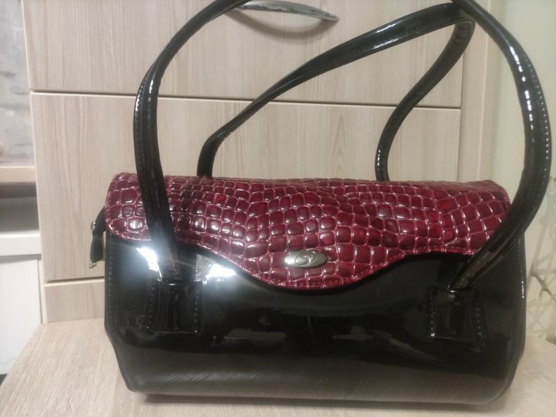Сумка лакована кожзам стан ідеальний довжина 30 см глибина 15 висота 16 довжина ручки 70 см. Стан ідеальний.
