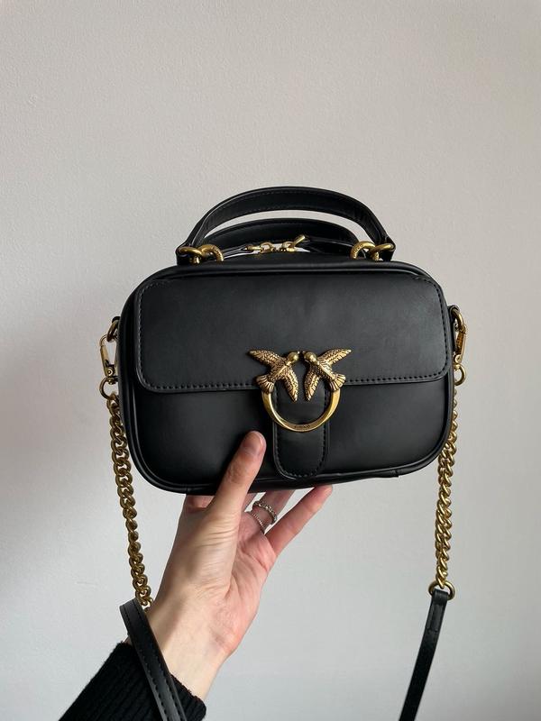 👜 Pinko Square Simply Mini Calfskin Bag Black (Арт: 99102) 💵 2750 грн 📐 Розмір: 22 х 14 х 6 см 🧵 Матеріал: Шкіра 🔎 Опис: Сумка виготовлена з натуральної шкіри. Всередині одне відділення, також є менше відділення на застібці і ще менша кишеня. Позаду сумочки є більша кишеня та 2 менші для карток. Підкладка всередині з приємної на дотик замші. Фурнітура металева, брендована. Для носіння у руці є дві ручки, а також у комплекті додатковий ремінець на ланцюжках з карабінами для носіння через плече. Також має діапазон регулювання довжини.