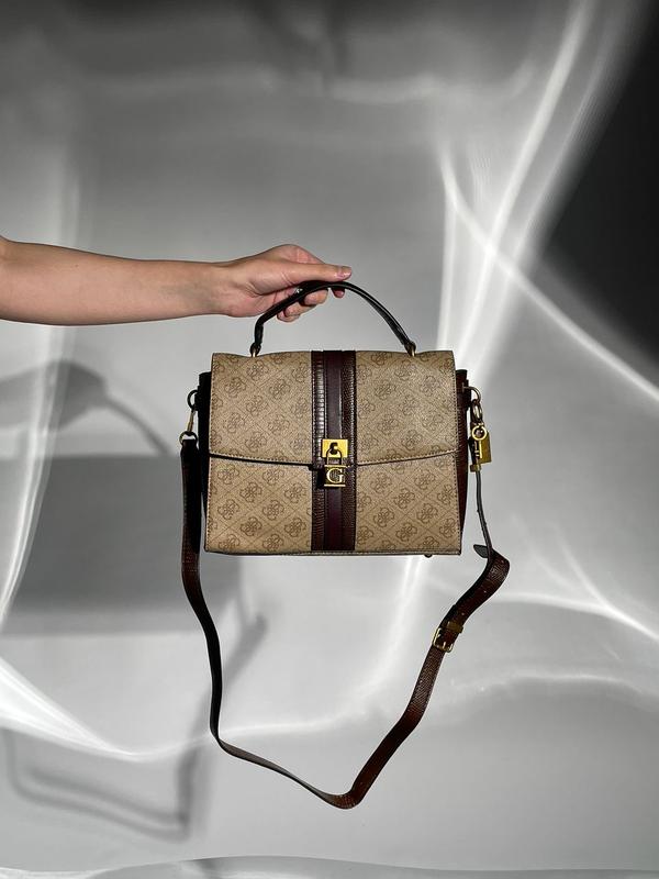 👜 Guess Ginevra Logo Elite Scity Stchl (Арт: 99056) 💵 2200грн 📐 Розмір: 26 х 20 х 9 см 🧵 Матеріал: Еко Шкіра 🔎 Опис: Сумка виготовлена з гладкої шкіри з фірмовою канвою. Всередині одне велике відділення, також є дві менші кишені одна з яких на застібці. Головне відділення зачиняється на магнітах-клапанах. Підкладка з брендованого текстилю. Ремінець для носіння через плече з еко шкіри, з регулюємою довжиною.