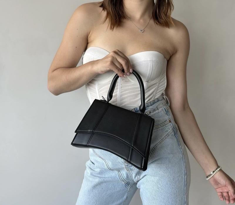 Унікальна форма. Базова сумочка під різні образи. 22х15х9см Преміум еко шкіра Висота ручки 11 см, ремінець регулюється.