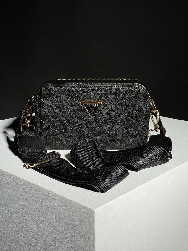 👜 Guess Zippy Snapshot Black/Gold (Арт: 17035) 💵 Ціна: 1550 грн 📐 Розмір: 21 х 12.5 х 7 см 🧵 Матеріал: Еко Шкіра 🔎 Опис: Сумка виготовлена з еко шкіри з фірмовим принтом. Усередині два відділення, на блискавках. Підкладка всередині сумки з чорної еко шкіри. Ремінець текстильний з фірмовими написами, регулюється від 63 до 105 сантиметрів у довжину. Комплектується у брендованій коробці та папері (за додаткову плату можна придбати документи, пильовик та фірмовий пакет).