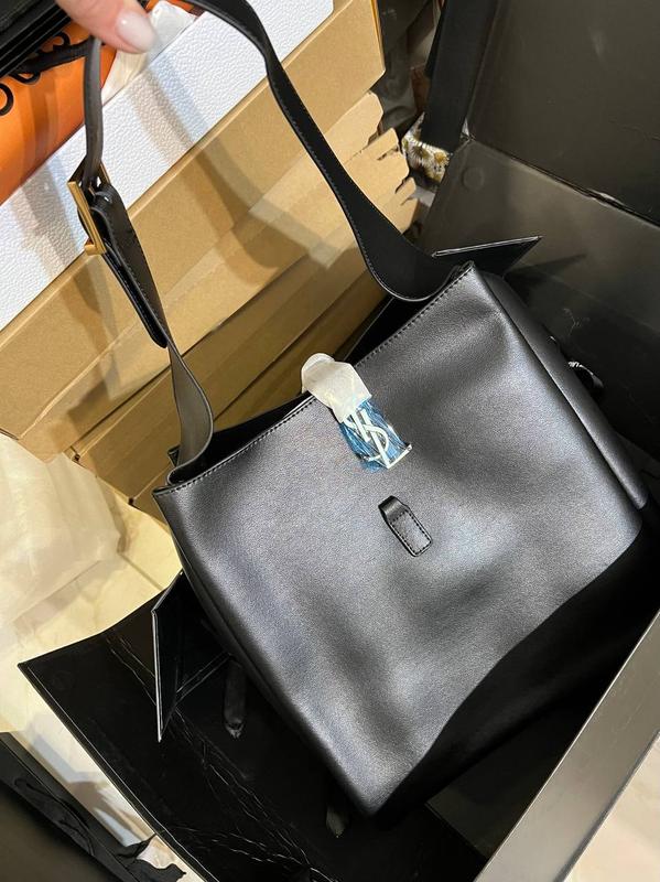 Сумка шоппер женская кожаная черная брендовая в стиле ysl люкс