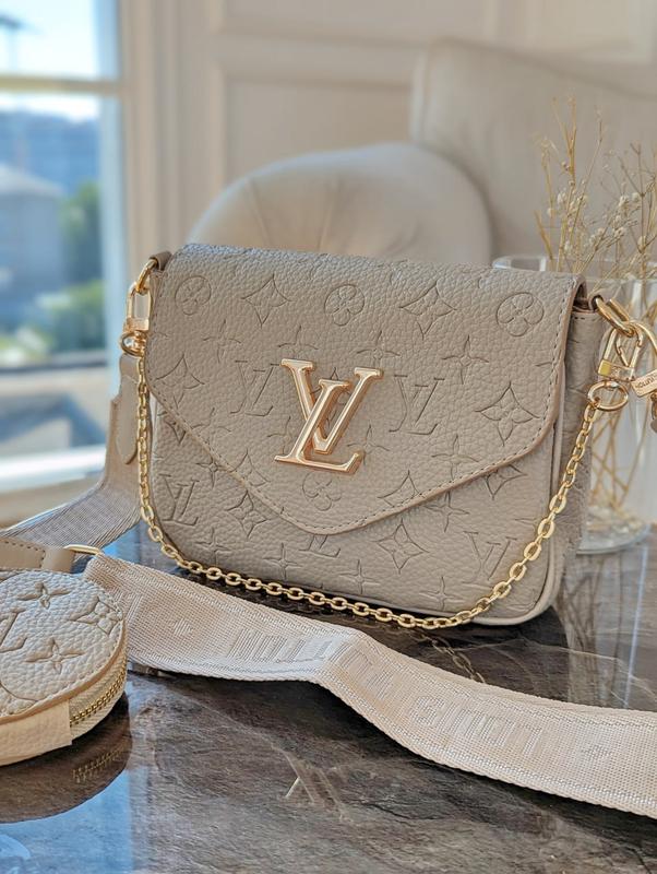 - брендированная фурнитура. - красивая и приятная на ощупь эко кожа. - Имеет одно главное отделение, внутри логотип. На ремне дополнительно косметичка. - размер сумочки: 20*16*7см - длина ремешка 145см 20368-3