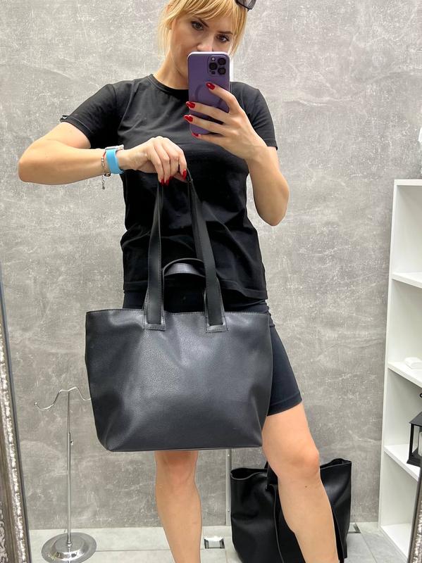 Код 0232-3. Турецька зерниста екошкіра. 1000 грн💳 Ширина по дну 34 см. Ширина вгорі 44 см. Висота 30 см. Дно 15 см. Висота довгих ручок 30 см. Одне відділення на блискавці, поділене навпіл перегородкою на блискавці. Всередині відкрита кишеня і кишеня на блискавці. З боків сумки карабіни для затягування куточків всередину. Над основною блискавкою кнопка. На зворотному боці кишеня на блискавці