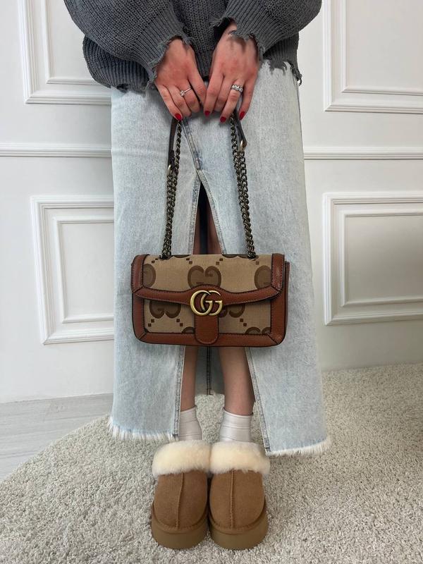 👜Gucci (Арт: 5027) 📐 Размер: 27 х 17 х 7 см 🧵 Материал: экокожа 🔎 Описание: Сумка изготовлена из экокожи с фирменным рисунком. Внутри одно отделение, есть небольшой карман на застежке. Подкладка внутри из плотного качественного текстиля. Цепочка металлическая, ручка из экокожи. Можно носить как через плечо так и в руке (регулируется). 🛍Бесплатная упаковка: брендовая коробка, пыльник, документы
