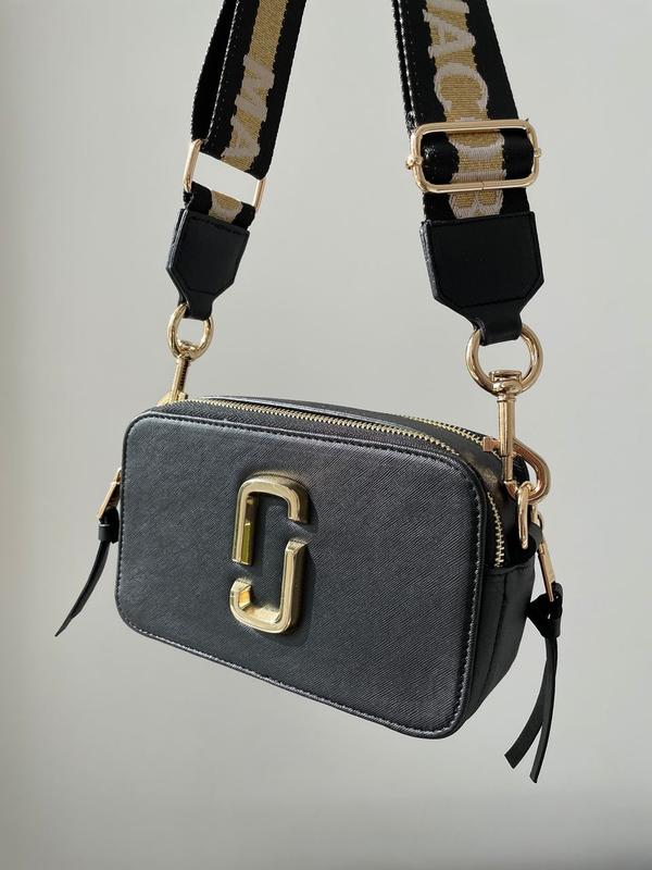👜 Marc Jacobs The Snapshot Black Gold (Арт: 02018) 💵1450 грн 📐 Розмір: 21 х 12.5 х 7 см 🧵 Матеріал: Еко Шкіра 🔎 Опис: Сумка виготовлена з екошкіри та текстилю, логотип металевий. Усередині два невеликі відділення, розділені між собою стінкою з екошкіри. На задній стінці сумки є невелика кишенька. Ремінець Marc Jacobs на карабінах, шириною 5 сантиметрів і довжиною від 63 до 105 сантиметрів максимум.