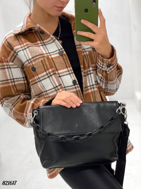 Код 821617 новинка 💞 Сумка ланцюжок шкіра Розмір: 25/18 Матеріал: натуральна шкіра якість люкс Колір:чорна Форму тримає супер Ланцюжок знімний матовий Ремінець регулюється