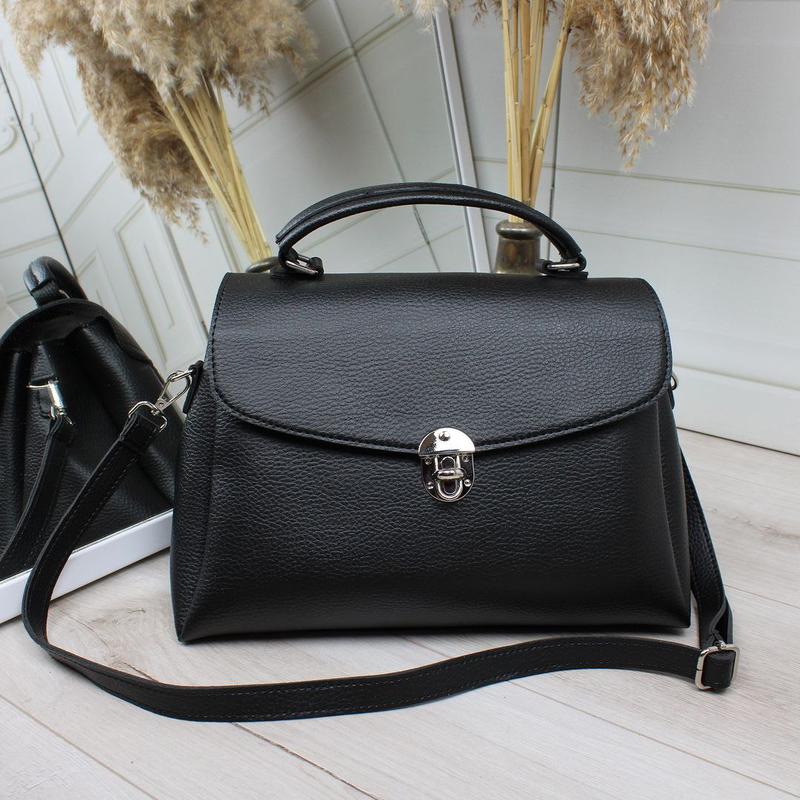 Стильна новинка 😍 Код Д614 Розмір: 32 см ширина по дну. 26 см ширина вгорі. 21 см висота. 12 см дно. Плечовий ремінь регулюється до 130 см. Матеріал: шкір.зам Особливості: закривається на клапан на поворотному замку. Три відділення . В середньому відділенні відкрита кишеня та кишеня на блискавці. Сумочка гарно тримає форму
