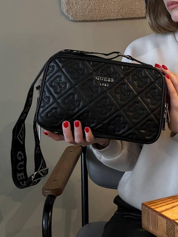 Guess Double Bag Total Black Арт: 0253 ціна: 1490 грн Розмір: 25 х 15 х 8 см Матеріал: еко шкіра Опис: Люкс якість! Сумка складається фактично з двох великих відділів, які сполучені між собою зовні. Кожне відділення на блискавці. В передньому відділенні є додаткова кишенька на блискавці. В іншому відділення є зовнішня кишенька на блискавці. Всередині брендова текстильна підкладка. Сумка має ремінець, який приєднується карабінами. Безкоштовновний комплект: брендова коробка + пакувальний папір. Платний комплект +160 грн: брендовий пакет, пильовик та набір документів.