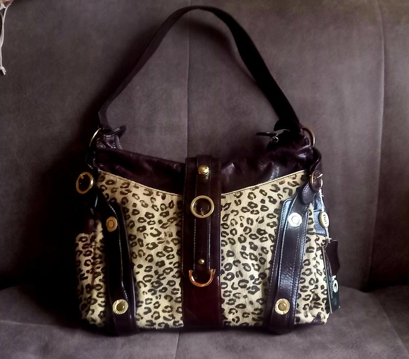 Красивая и функциональная кожаная сумка с хорошей вместительностью темно-бордового цвета с золотистой фурнитурой. Застегивается на молнию и декоративную кнопку, украшенную фирменным логотипом Сумка на красивой хлопковой подкладке анималистической расцветки. Есть прорезной карман на молнии для ключей на вуктренней поверхности сумки и карман на 2-х кнопках на внешней поверхности Несмотря на свой размер, сумка имеет очень небольшой вес, благодаря чему ей очень комфортно пользоваться. Внутри: один отдел разделен карманом-перегородкой из плотной подкладки – закрывается на молнию. Дополнительный карман на молнии с одной стороны и 2 накладных небольших кармана открытого типа с другой. Имеются ручка, которая позволяет носить сумку на плече. Высота ручки - 129 см Размеры: 40 см х 28см х 7 см.