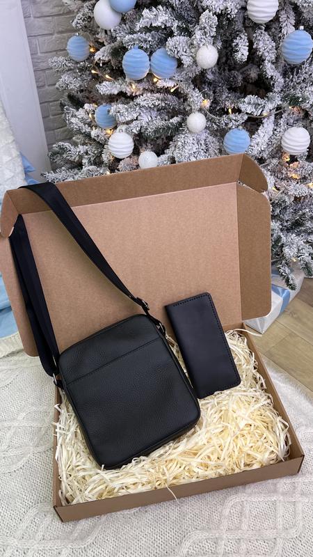 🎁подаруноковий набір чоловіча шкіряна сумка +барсетка шкіряна, клатч чорний, мужская кожа...