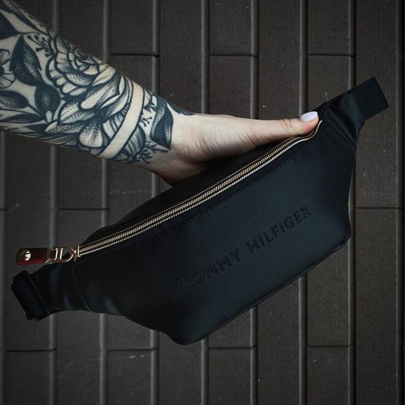 Матеріал шкірозамінник, тактильно дуже приємний на дотик. - колір чорний. - Ремінь з можливістю регулювання по ширині. - логотип видавлений, зроблено тиснення. - Два відділення на змійці. - Розміри 22х11х9см.