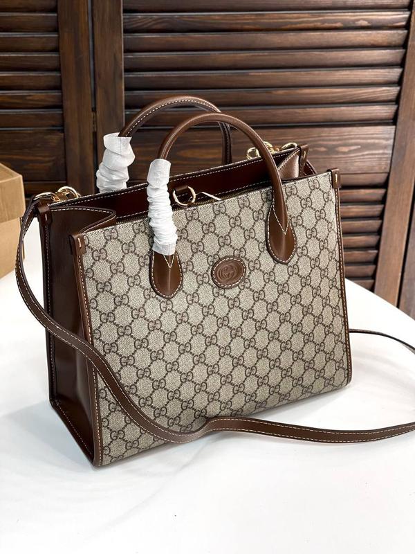 GUCCI SHOPPER BAG WITH LOGO 🤎 • GG Supreme • ручки, плечевой ремень и отделка - натуральная кожа • все логотипы • серийный номер Размер: 31"27 см В полной фирменной упаковке