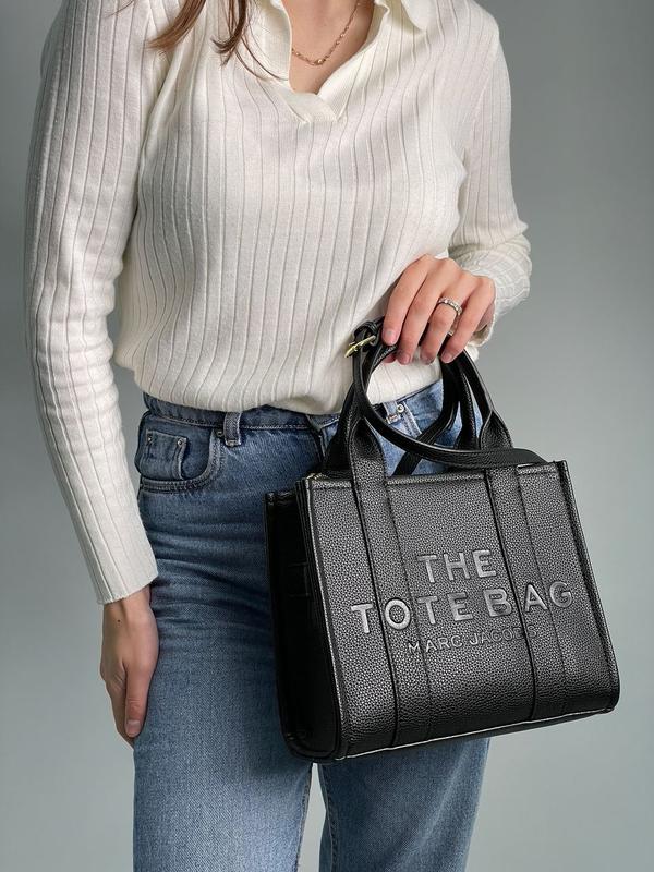 👜 Marc Jacobs The Leather Small Tote Bag (Арт: 99141) 📐 Розмір: 25.5 x 21 x 10 см 🧵 Матеріал: Шкіра 🔎 Опис: Сумка виготовлена з зернистої шкіри з фірмовим тисненням. Всередині одне велике відділення та дві невеличкі кишені. Підкладка з щільного якісного текстилю гірчичного кольору. Якісна металева фурнітура. В комплекті є вузький ремінець для носіння через плече, довжина регулюється. Комплектується у брендованій коробці та пильовику.