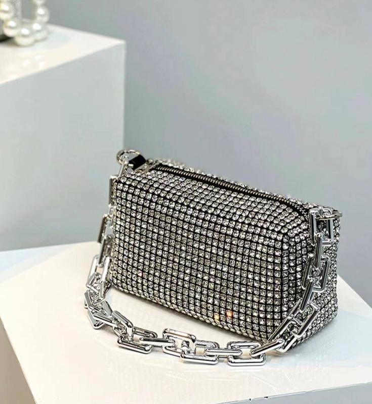👆Шикарна сумочка в камінцях Код 7850 Колір чорна основа та срібна фурнітура. Стрази - скло В комплекті має довгу ручку ланцюг та коротку ручку ланцюг з декоративними великими ланками. Має 1 великий відділ та маленький для карток Фабричний Китай Люкс якість🇨🇳