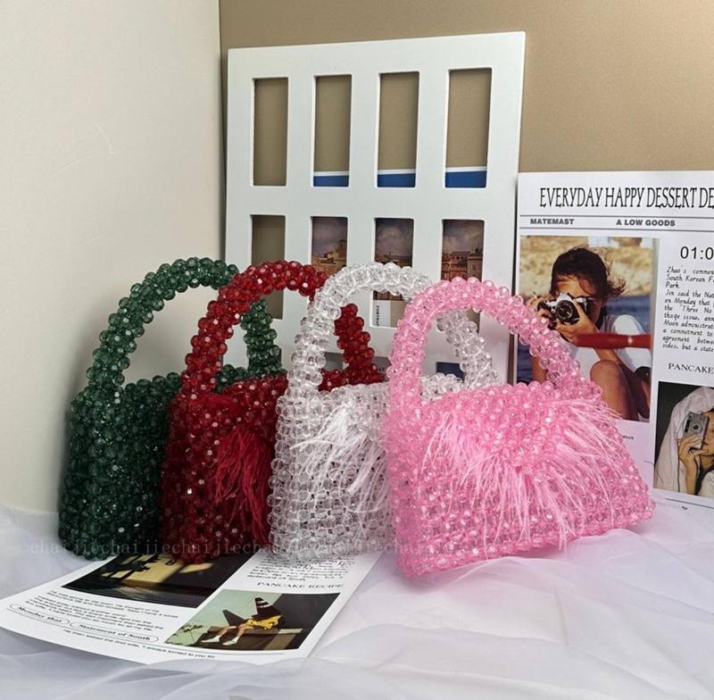👆Кришталева сумочка декорована натуральним пірʼям. Кольори : чорна🖤, вишня🍒 , рожева 💕. Розмір 22,5*13*5см Натуральне пірʼя Має 1 великий відділ Ручна робота