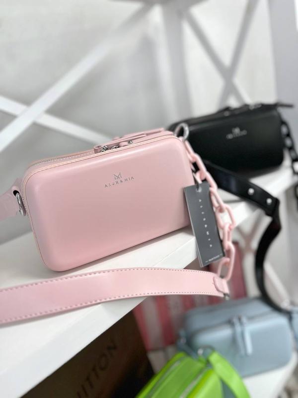 Код 828410 Новинка ❤️🔥 Сумка валізка 2 відділи Матеріал: екошкіра Колір: лаванда , пудра У комплекті: пильник , пакеті лого Розмір: 21/12/9 Рімінець регулюється, частина кільця з‘ємні за бажанням 2 окремі відділи на встрічних змійках ✅ Носиться на 2 сторони ✅