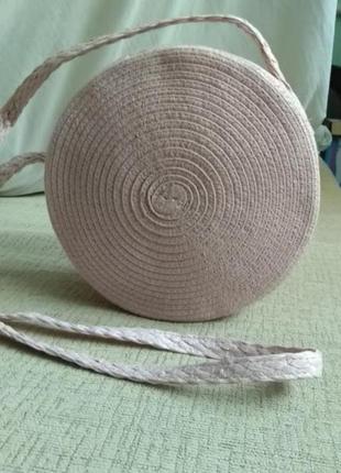 Красива сумка Сумочка H&M. Швеция. Отличное дополнение к летней одежде сумочка из натуральных материалов нежного розового цвета Одно отделение. Ручная вязка ручки и самой сумки Все исправное. Чудово доповнить стиль бохо. Диаметр 19 см, длина ручки 100 см.