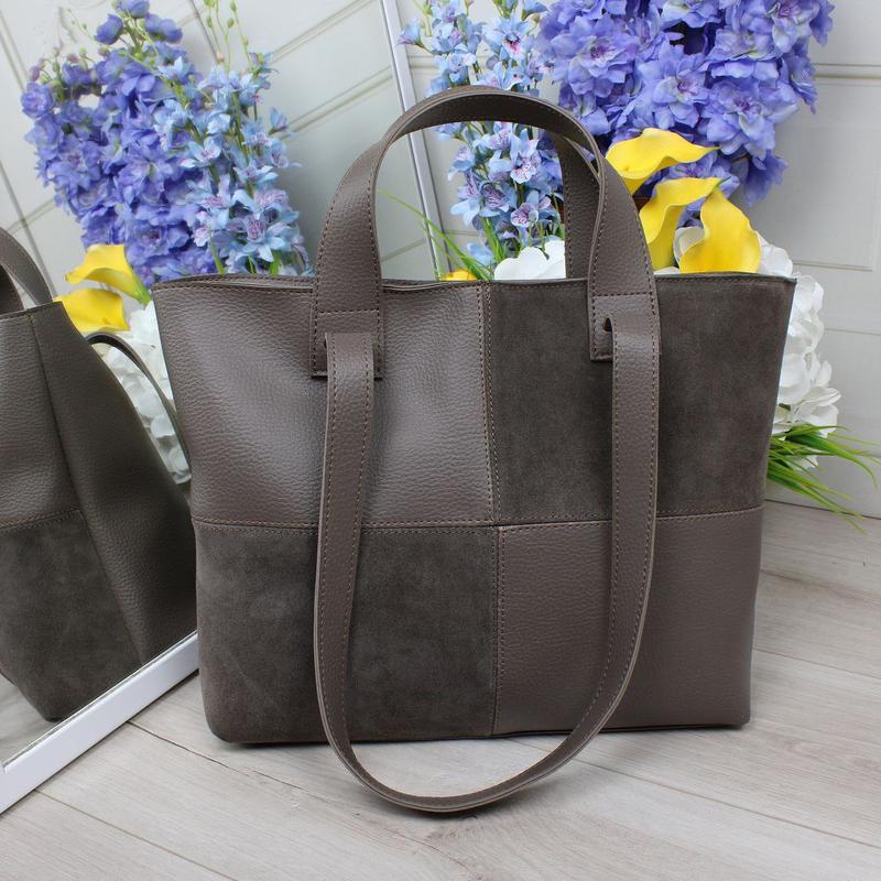 Це кохання з першого погляду 🔥Велика містка сумка. Вміщує формат А4♥️ Ціна 850 грн ✅ Матеріал: еко шкіра / натуральна замша 🔥 Підкладка -щільна тканина ✂️Розмір: ширина внизу сумки 34см, ширина вгорі сумки 40 см., Висота 30см, дно 15 см. Висота плечових ручок 30см. ✅Сумка закривається на блискавку, два відділення, по середині перегородка-кишеня на блискавці. Відкрита кишеня та потайна кишеня на блискавці. На зворотному боці кишеня на блискавці