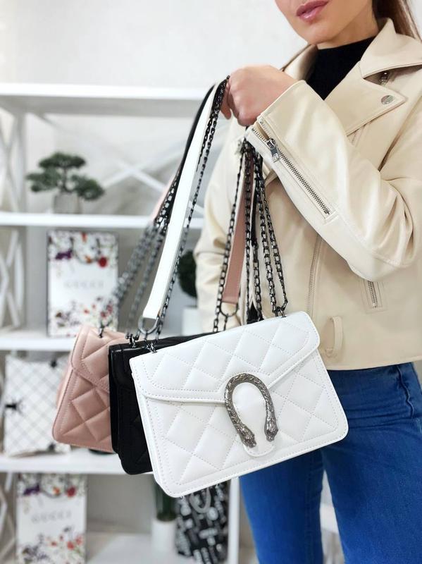 828461 НОВИНКА❤️🔥 Сумка Текстурна Кольор: чорний; пудра; білий ланцюжки в комплекті комбіновані Матеріал: екошкіра Розмір : 23/15