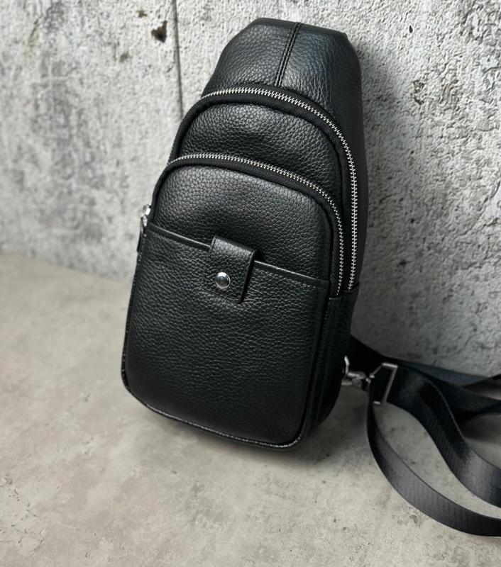 Сумка через плече. Зручна та стильна. Матеріал: натуральна шкіра. Колір: чорний. Розмір: 15×27×6см.
