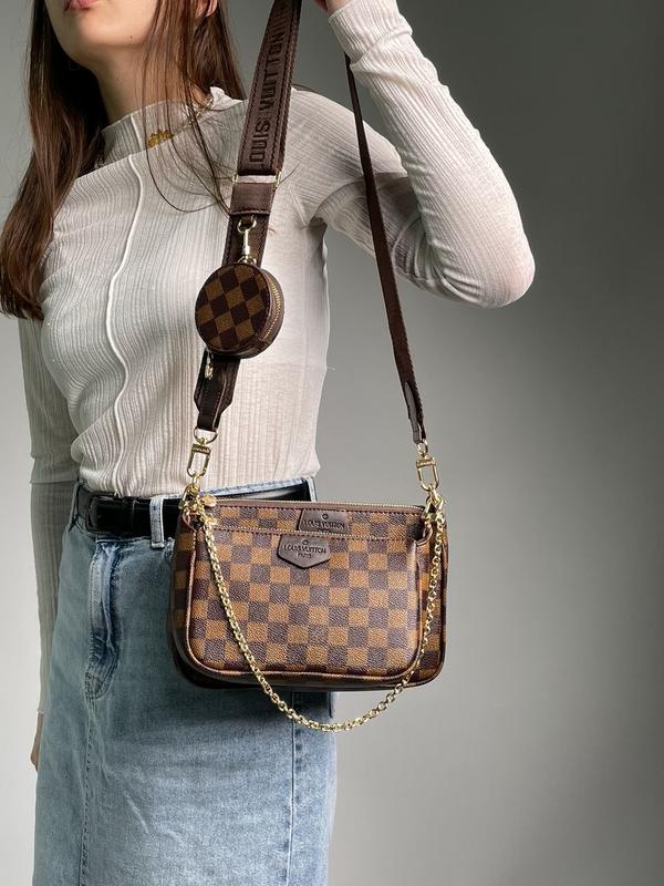 👜 Louis Vuitton Pochete Multi Brown Belt (Арт: 01024) 💵 1590 грн 📐 Размер: 23 х 16 х 5 см 🧵 Материал: Эко Кожа 🔎 Описание: Сумочка выполнена из коричневой экокожи с фирменной канвой лв. Широкий пояс коричневого цвета из текстиля регулируется от 82 сантиметров до 117 см. Также на поясе есть небольшой круглый кошелек на молнии для разной мелочи. Декоративная цепочка на карабинах из легковесного металла. Сумка из двух частей, в каждой из которых одно большое отделение (преимущественно есть так же небольшой кармашек внутри). Внутренняя подкладка из плотного текстиля коричневого цвета. Комплектуется в брендированной коробке и брендированной бумаге (при дополнительной плате можно приобрести пакет, пыльник и документы).