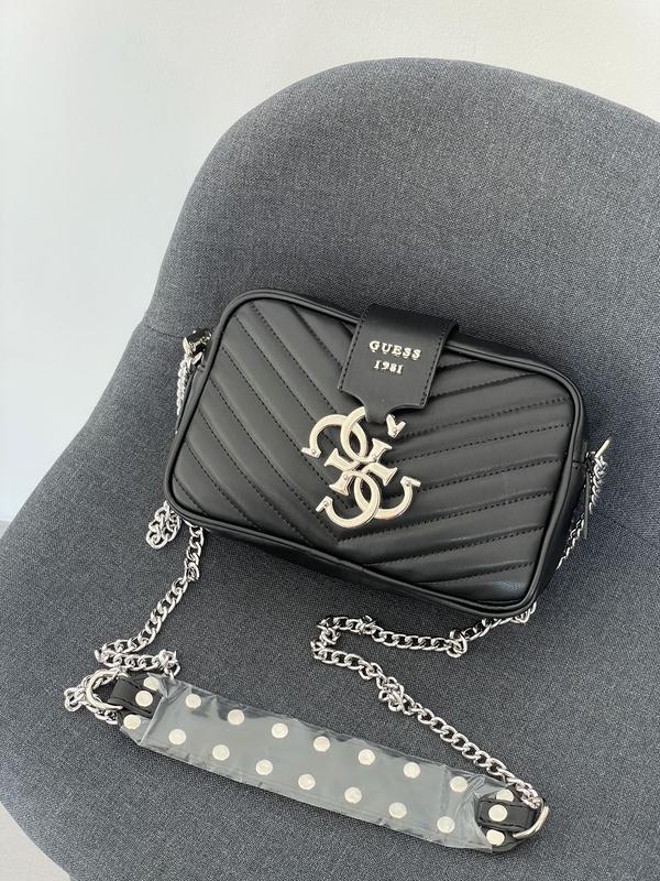 👜 Guess Penelope Black (Арт: 17006) 💵 1390 грн 📐 Розмір: 20 х 14 х 6 см 🧵 Матеріал: Еко Шкіра 🔎 Опис: Сумка виконана із простроченої еко-шкіри. У моделі одне відділення (на блискавці), є також невелика кишенька. Підкладка всередині текстильна з фірмовими написами. Ремінець на ланцюжках, з ручкою з еко-шкіри та декорованими «шипами». Комплектується у брендованій коробці та папері (за додаткову плату можна придбати документи, пакет, пильовик).