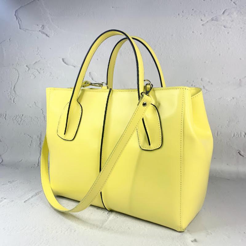 Материал: натуральная кожа Размер, см: 33 x 12 x 26 (ДxШxВ) Сумка закрывается на молнию, внутри карман на молнии. На подкладе. Две ручки для ношения в руке. Шлея через плечо. Цвет- желтый Способы доставки: Нова Пошта Способ оплаты: -100% оплата на карточку ПРИВАТБАНКА -наложенный платеж (предоплата 250 грн)