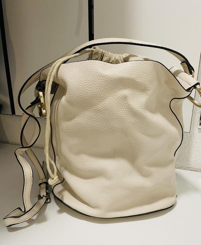Трендовая сумка відро від Mango, колір молочний. Одне відділення, затягується на шнурок.