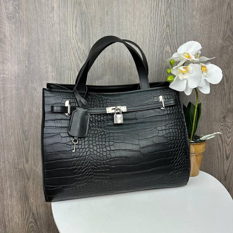 Велика жіноча сумка під рептилію з чорним декоративним замком. сумочка на плече рептилія к...