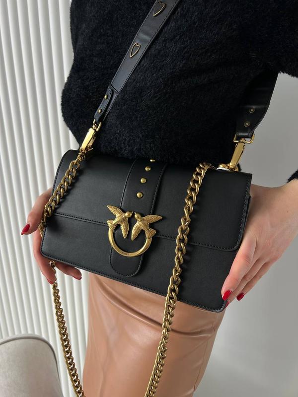 👜 Pinko black (Арт: 08001) Преміум якість⭐️ 📐 Розмір: 27 х 17 х 8 см 🧵 Матеріал: екошкіра 🔎 Опис: Якісна тверда екошкіра. Всередині три відділення одне з яких на застібці, також є невеличка кишеня. Підкладка у сумки з щільного текстилю. Фурнітура металева, брендована. Має 2 ремінця, один з котрих для носіння через плече з шкіряною ручкою (фіксованої довжини) 🛍Безкоштовне пакування: брендова коробка, пильовик, документи 🛑