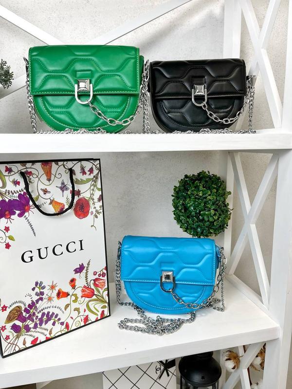 828486 Сумка полукругла Колір: чорна ; зелена; блакитна ланцюжок в сріблі Матеріал: екошкіра Розмір : 21/15