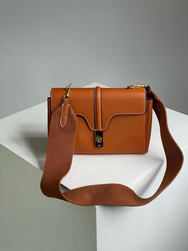 Celine Teen Soft 16 In Smooth Calfskin Tan Brown Размер: 23 x 16 x 9 см Материал: Кожа Сумка выполнена из гладкой кожи приятной на ощупь. Внутри два одинаковых по размеру отделения, также на задней стенке есть карман на застежке. Подкладка у сумки из бархатного текстиля черного цвета. Фурнитура качественная металлическая, брендированная. Ремешок для ношения через плечо достаточно широк, выполнен из плотного текстиля и не регулируется по длине. Комплектуется в брендированной коробке на магнитах, пакете и пыльнике. 99083