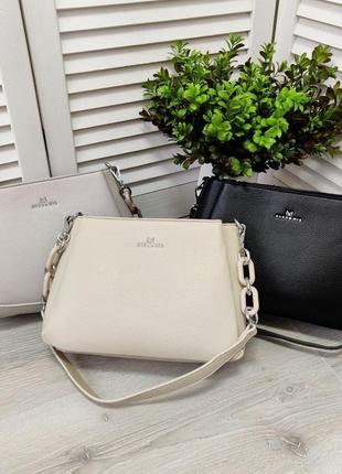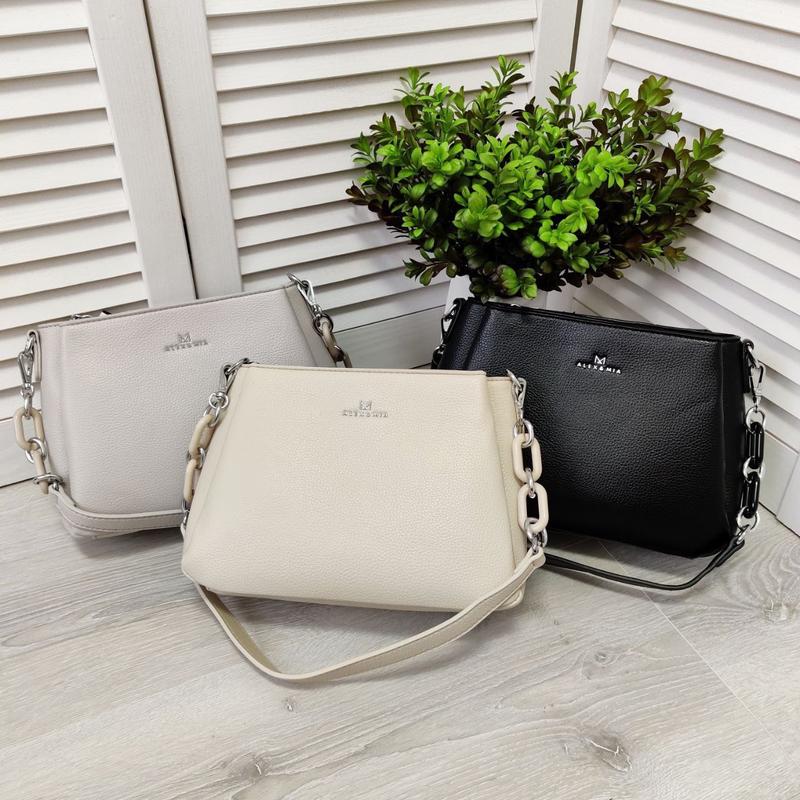 🔥Красива, ніжна сумочка 🔥 📐Розміри: Висота -17,5 см. Ширина по низу- 25 см. Дно - 8 см. В комплекті два ремінця. Матеріал - еко шкіра. 📌Сумочка на три окремих відділення. 📌Одне відділення закривається на блискавку, два інших на кпонпу -магніт. 📌 Всередині дві відкриті кишені та ще одна на блискавці. #сумки
