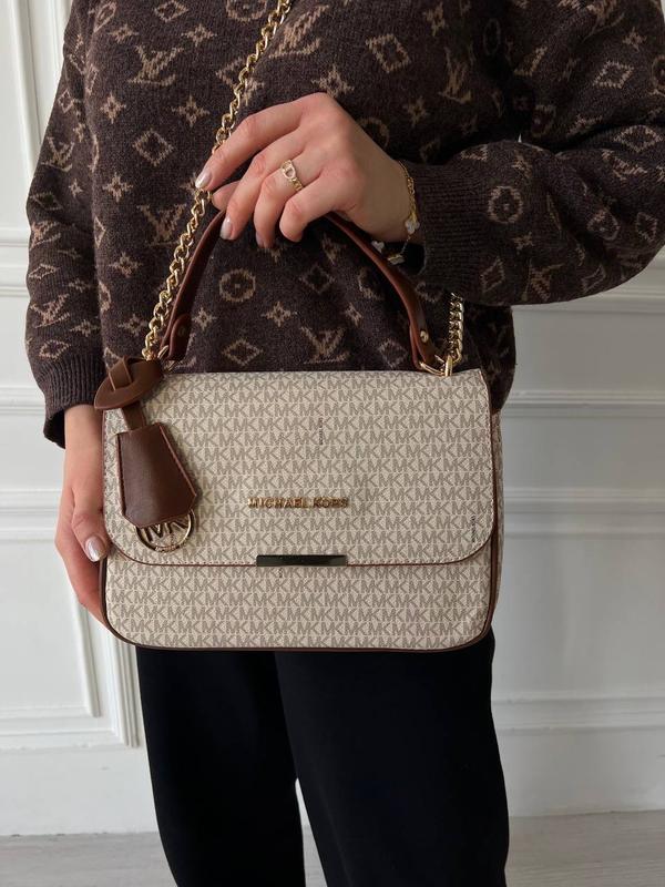 📐 Розмір: 27 х 18 х 9 см 🧵 Матеріал: Сумка виготовлена з екошкіри молочного кольору. Всередині два відділення, є 2 кишені на блискавці. Підкладка всередині з щільного фірмового текстилю. Ланцюжок золотого кольору з плечовими вставками. Є можливість регулювання довжини. Має фірмовий брелок. 🛍Безкоштовне пакування: брендова коробка, пильовик, документи