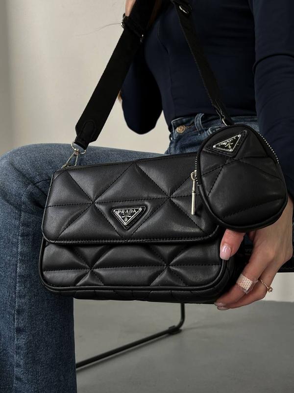 Арт: 0074 ціна: 1590 грн Розмір: 24 х 16 х 7 см Матеріал: еко шкіра Опис: Сумка виготовлена з чорної простроченої еко шкіри. Всередині одне велике відділення та маленька кишенька на блискавці. Підкладка всередині сумки текстильна, з логотипами бренду. Сумка має текстильний ремінець і залізний ланцюжок. До ремінця приєднується невеликий гаманець на блискавці. комплект: брендова коробка + пакувальний папір.
