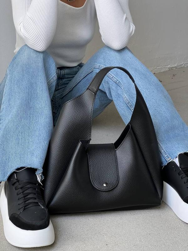 Жіноча сумка. Сумка відкривається магнітом. Усередині без підкладки та без кишень. Матеріал: екошкіра Колір: чорний Розміри: універсальний Орієнтовні заміри по готовому виробу: довжина 30 см, ширина 12 см, висота 16 см.