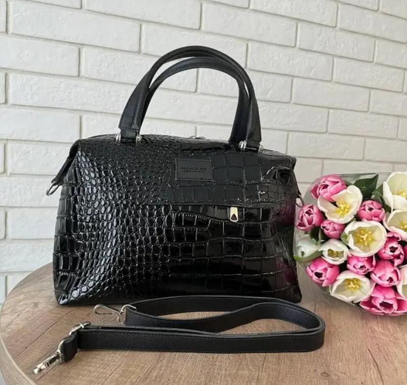 Большая женская сумка рептилия тиснения на плечо, сумочка крокодил змеиная экокожа Характеристики: Материал: качественная и плотная турецкая экокожа, без постороннего запаха; Качественная подкладка (не полиэстер); Длина: 34 см; Ширина на основе: 13 см; Высота: 24 см; Плечевой ремень на карабинах входит в комплект (можно носить как в руках за ручки, так и на плече)
