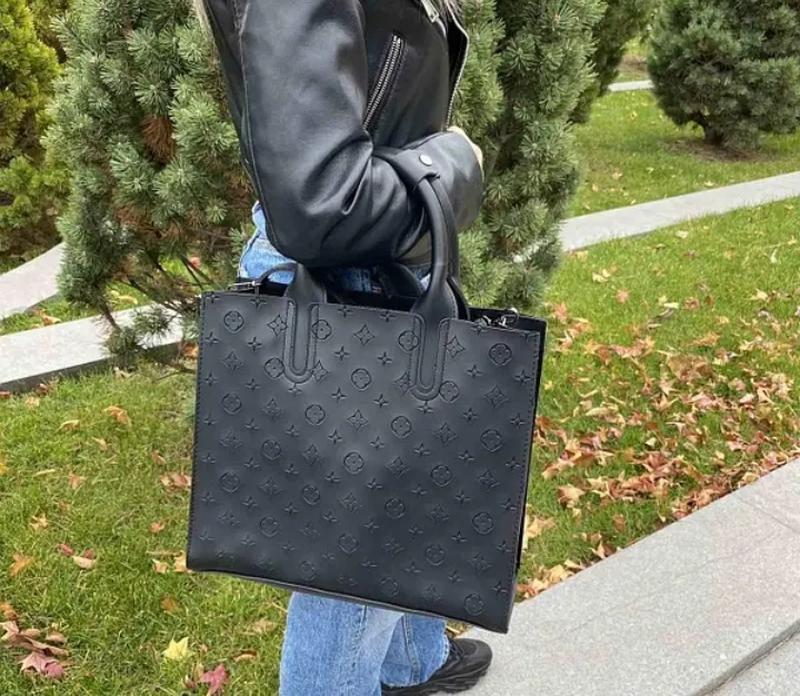 Большая черная женская сумка Луи Витон люкс , городская сумка для женщин на плечо Характеристики: Материал: качественная и плотная турецкая экокожа, без постороннего запаха; Длина: 32 см; Ширина по основанию: 11,5 см; Высота: 27 см; Плечевой ремень на карабинах входит в комплект (можно носить как в руках за ручки, так и на плече)