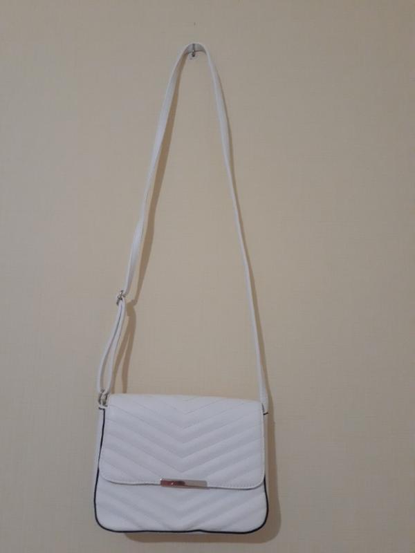 Висота 18 см , ширина 24 см , ширина дна 7,5 см. Всередині дві кишеньки , застібка на магніті , довжина ручки 140 см , регулюється. Колір світло бежевий , близько до білого.