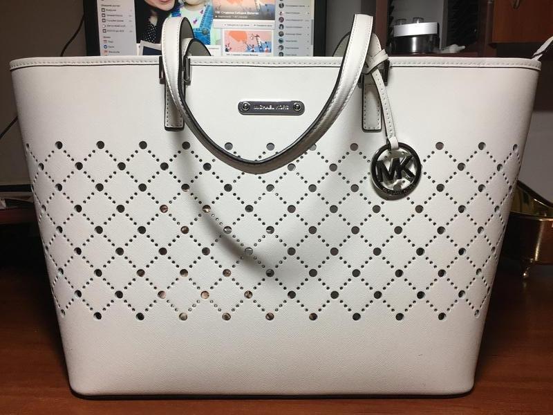 Сумка ОРИГІНАЛ!!! куплена у США, за поглядом і якістю АБСОЛЮТНО ВІДРІЗНЯЄТЬСЯ ВІД ТИХ ПІДРОБОК, ЯКІ ПРОДАЮТЬ У НАС В МАГАЗИНАХ ЧИ НА РИНКАХ!!! НАТУРАЛЬНА ШКІРА на підкладці - принт логотипу бренду (ознака оригіналу), в ідеальному стані, без браків чи пошкожень, має 5 внутрішніх кишеньок, одна, найбільша з них - на замку-блискавці, сумка також на блискавці, 35 х 30 х 18см - внизу, вгорі - ПО - 52см, ручки - 60 см,- можна носити в руці та на плечі, оригінальна ціна - 348 доларів США, на етикетці Буде у продаж тільки до 23,08!!