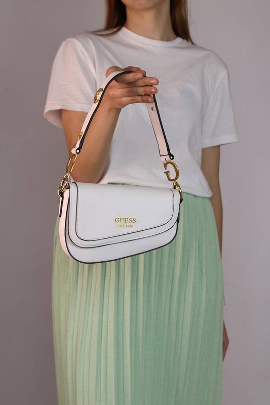 GUESS G-DREAM LOGO FLAP SHOULDER BAG white 📌Арт: 3202 Опис: 🔗 Розмір: 22х15х6 🔗 Матеріал: Еко шкіра Сумка виготовлена з якісної еко шкіри, має одне відділення, яке застібається на магнітну застібку. Підкладка текстильна. Має бокову внутрішню кишеньку, яка застібається на блискавку та бокову відкриту кишеньку. В комплекті є ремінець - ручка з еко шкіри з декоративними деталями та плечовий ремінь - з еко шкіри на карабінах, який регулюється, довжиною до 110 см, шириною 2,5 см. Можна носити в руці або через плече. Фурнітура золотистого кольору. Пакування: брендова коробка, пильник, наповнювач, наліпка. ✅2050 грн.