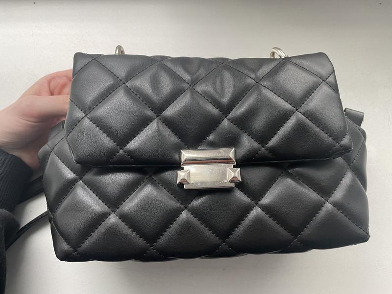 Чорна сумочка на кожен день та на святкові події,на магнітній застібці та коротка ручка з цепу,але я до нього іде ще довгий,чорний шкіряний ланцюжок.Стан ідеальний 😍