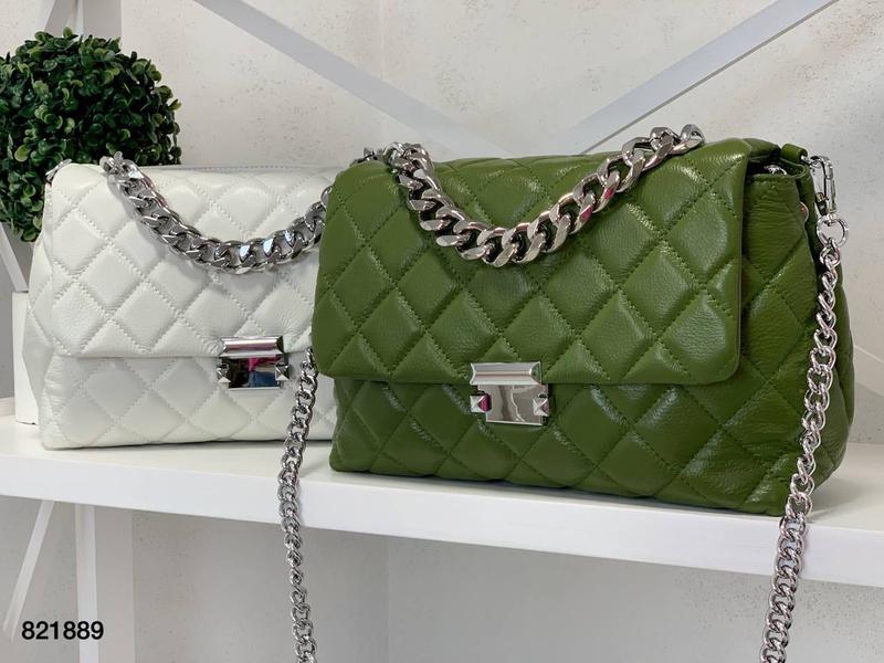 821889 Сумка стегана шкіра Ціна 1880 грн Розмір: 25/17 Матеріал: натуральна шкіра Колір: ❤️ чорний ♥️ білий ❤️ рудий Форму тримає супер фурнітура у сріблі Ланцюжок - ручка ремінець довгий шкіра натуральна