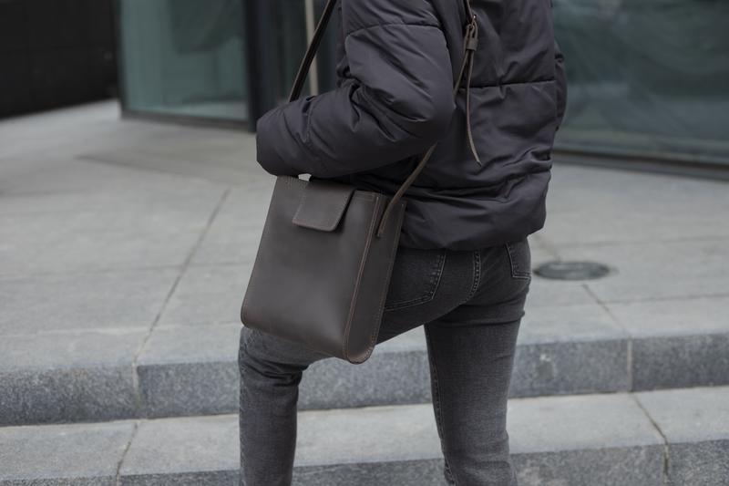 Шкіряна сумка "стефанія" шкіра crazy horse (крейзі хорс), колір шоколад