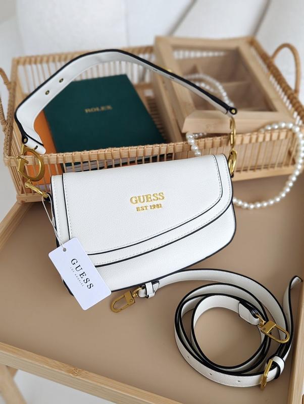 Сумка dream сідло білий Люксова модель сумка-сідло незвичайної форми Має фірмові бирки на зовні та всередині Розмір: 23 * 15 * 5 см. Високоякісна канва, що має шорстку зернисту структуру. Довгий змінний ремінь, регульований на масивних карабінах. Пильовик Guess в комплекті Код білий 20424-3