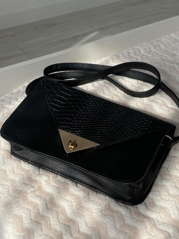 Чорна сумочка, чудово підійде як для вечірніх образів, так і для кежуал образів на кожен день. Є незначний дефект, при носінні непомітний.