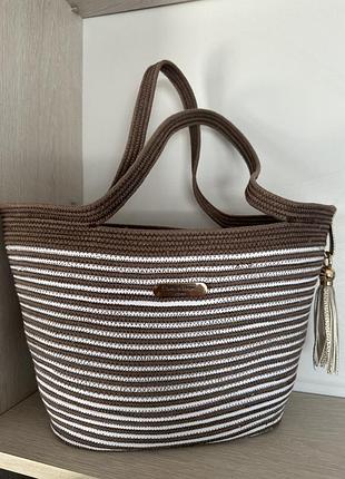Сумка ручної роботи виконана з бавовняного шнура. Розміри сумки: Висота 25 см Ширина 37 см Ручки по 50 см