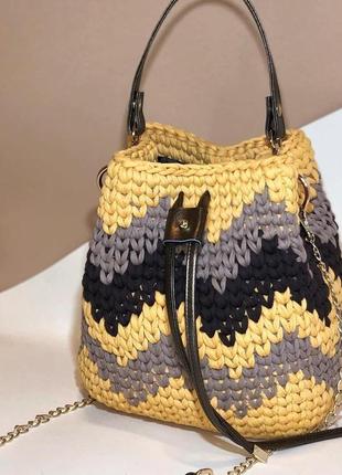 Сумка-торба. Бажаєте додати яскравості в повсякденний образ? Тоді вона саме для вас. Містка та зручна. Фурнітура з екошкіри. Можливе виконання в різних кольорах. Всередині підкладка. Розміри: 26 х 20 х 11 см Довжина короткого ременя 40 см Довжина ланцюжка 120 см Ціна: 2000грн. Додаткові характеристики: Колір: Бежевий Колір: Жовтий Колір: Коричневий Матеріал: Штучна шкіра Матеріал: Пряжа трикотажна Модель: Сумка-мішок Розмір: Великий